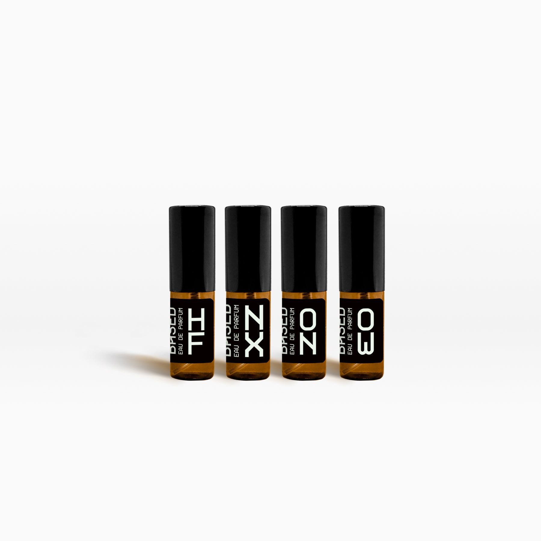 This bundle includes 4 x 5ML bottles of our HF, NX, ON and OW fragrances.